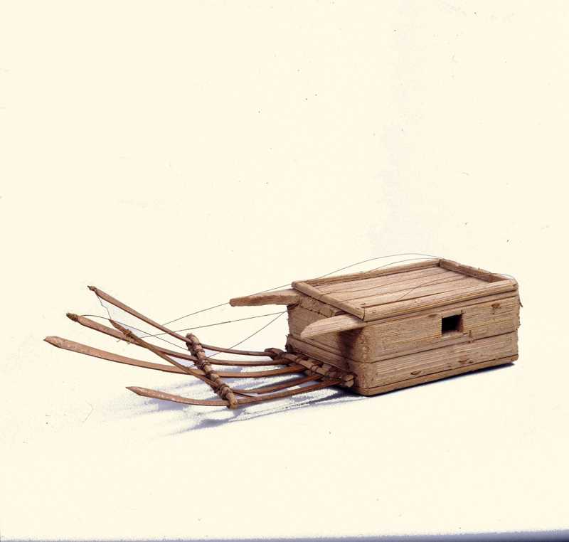 És un instrument del sud-est d’Àfrica anomenat goukha’s. Consisteix en una caixa prismàtica rectangular feta de fusta, amb decoracions de ràfia i canya, que consta d’una obertura acústica rectangular en un dels laterals. Tant la taula com el fons són plans i d’un dels laterals sorgeixen cinc arcs metàl·lics plans amb la punta en forma de llança, que actuen de batedors per a subjectar el cinc cordes simples de l’instrument. Per tant, la subjecció d’aquestes al claviller és independent de la taula harmònica.